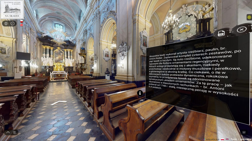 - wirtualna wycieczka po zabytkowym kościele z narracją lektora,